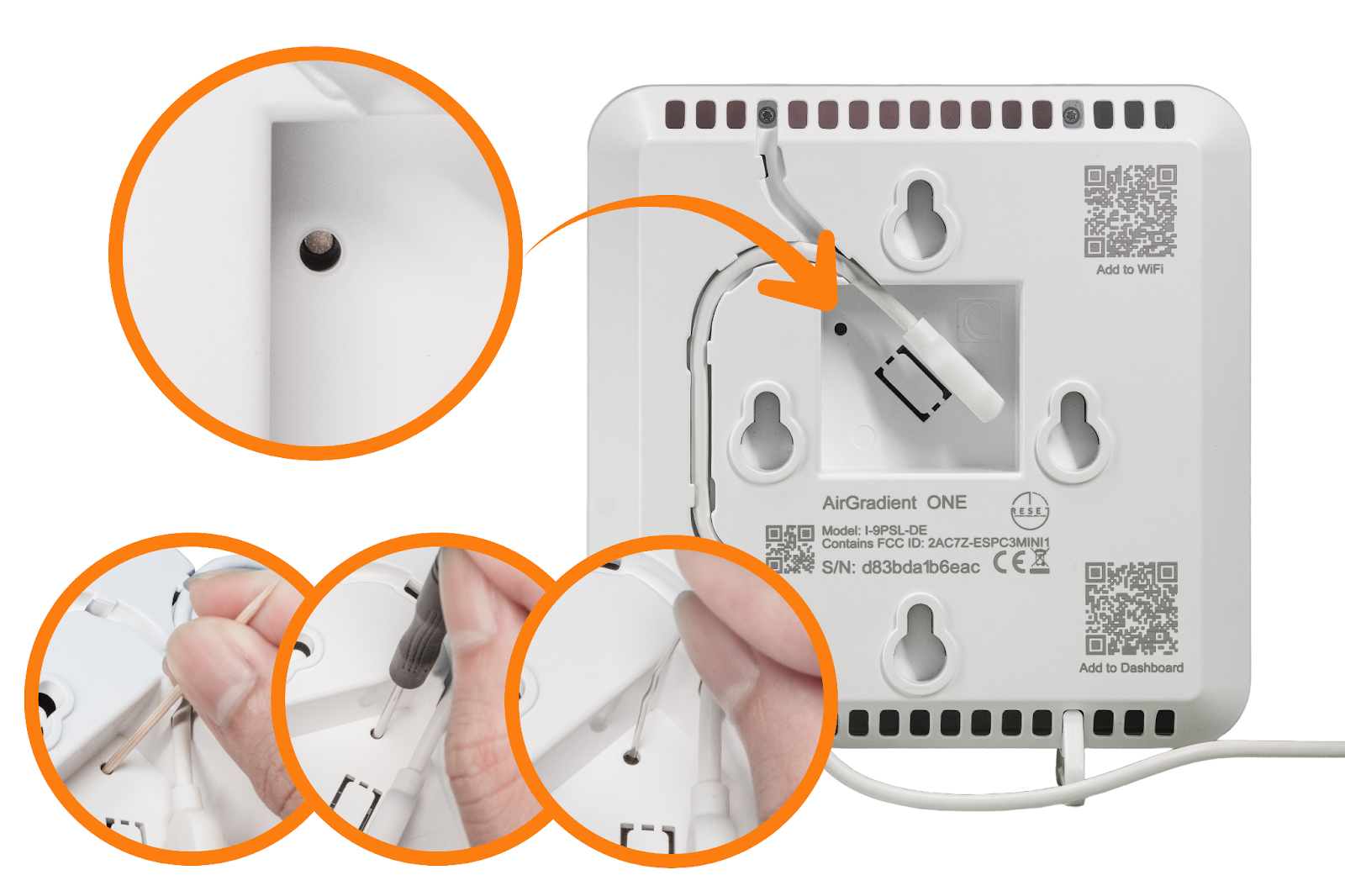 Inside is the BOOT button that can be pressed using a small screwdriver or pin.