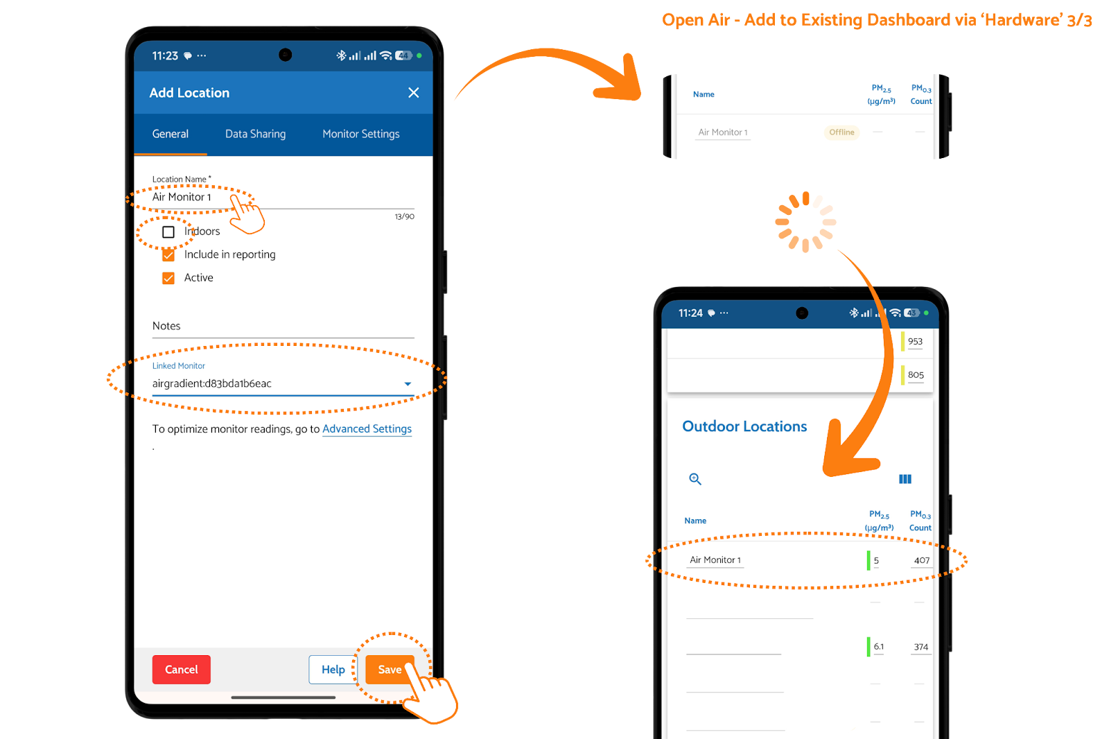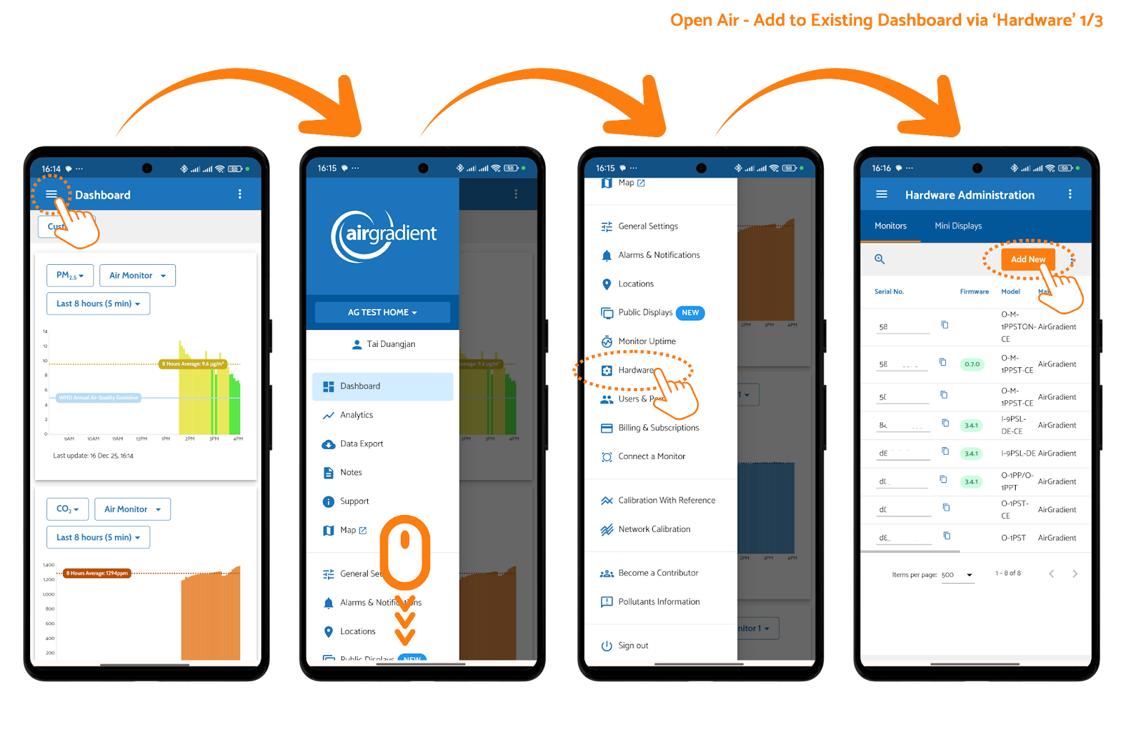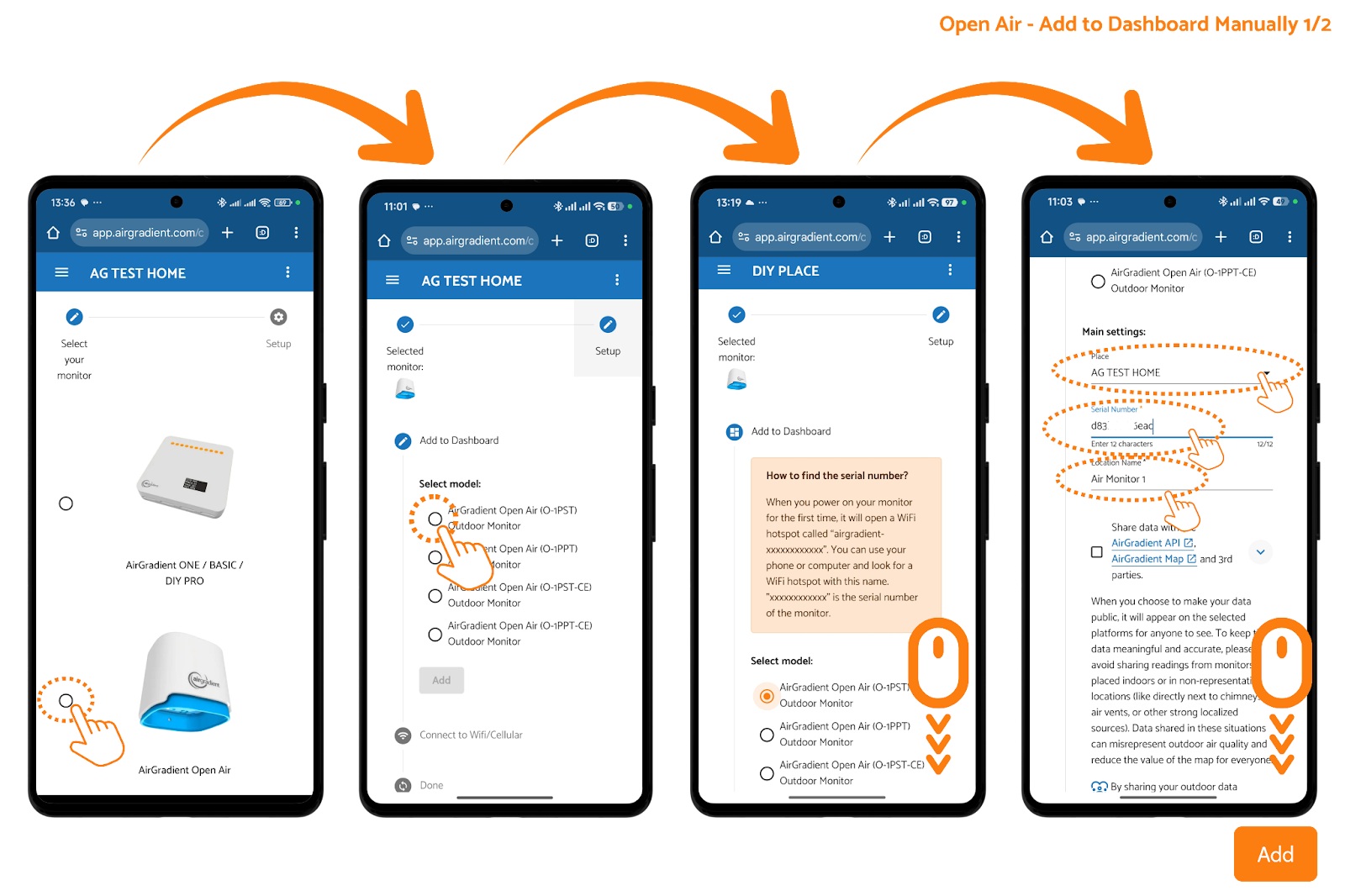 There are two ways to add your AirGradient Open Air to the dashboard.