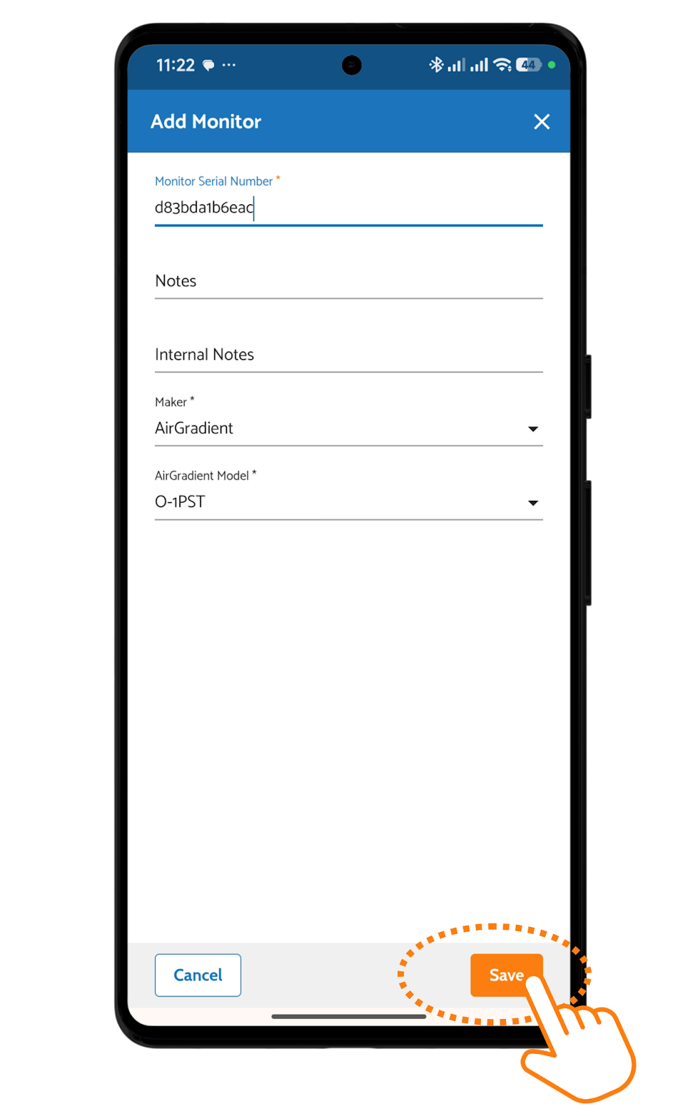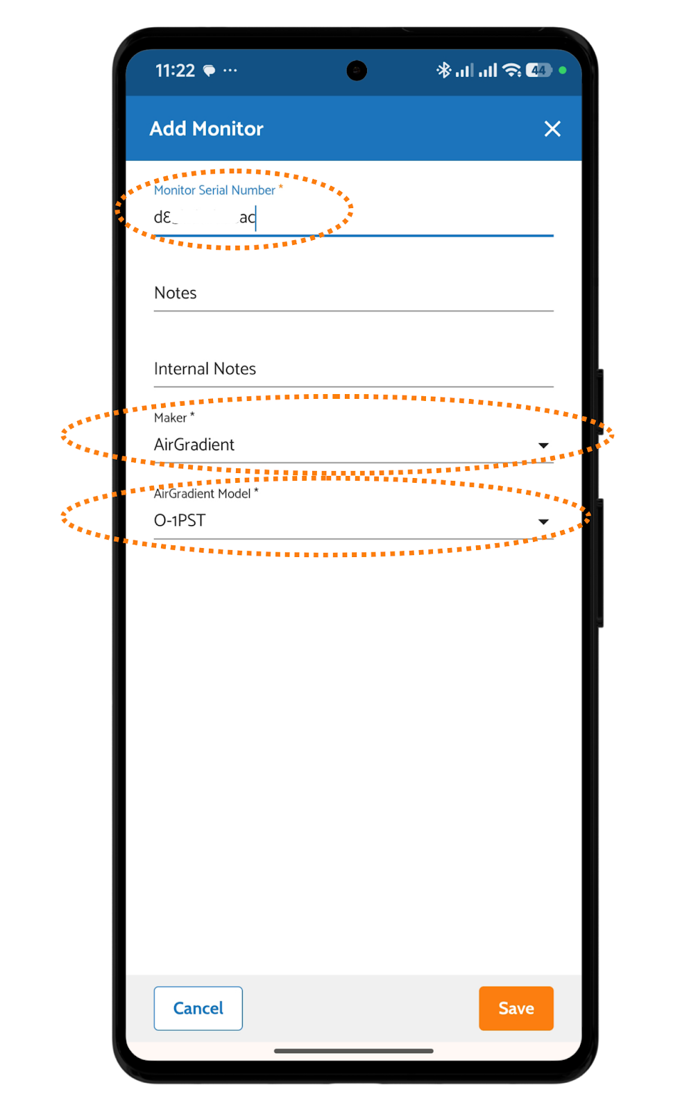 For assembled monitors, the SN printed on the back of the monitor but for DIY kits, it is not. To find the SN for the DIY kits, when you startup the monitor, you can see a message “180s to connect to WiFi Hotspot airgradient-xxxxx”. The xxxxx is the serial number of the monitor. Please make sure that you use it in lower case only and also do not use “airgradient-” which is not part of the serial number. So if for example, the display shows “airgradient-625bf2”, then “625bf2” is the serial number.