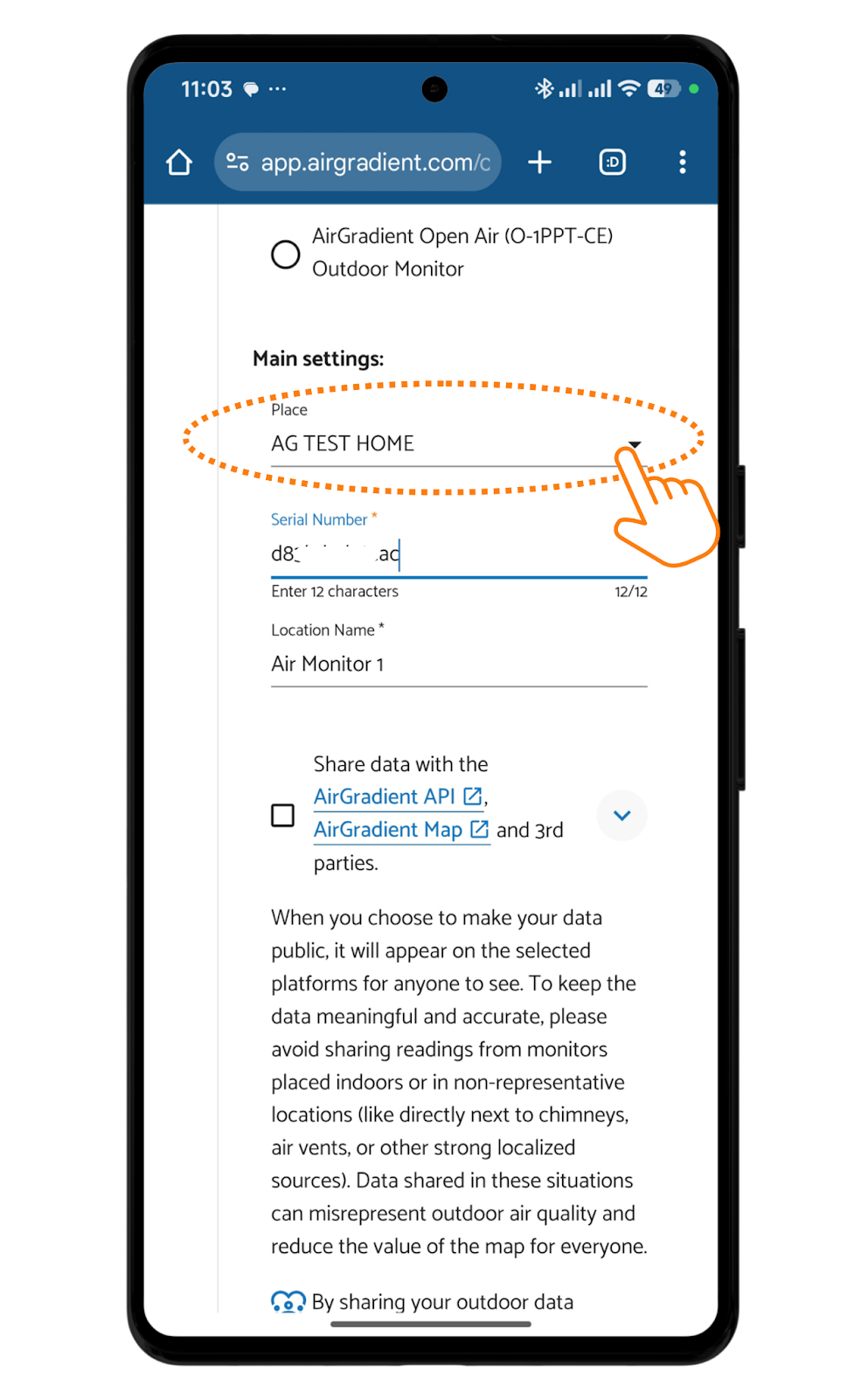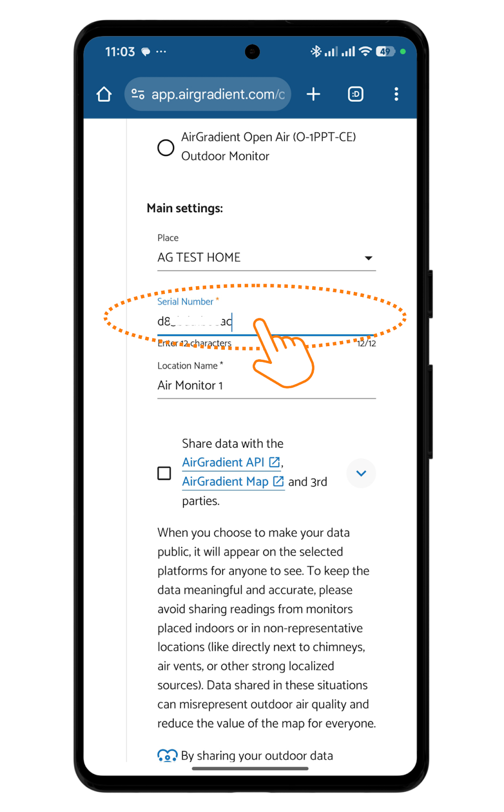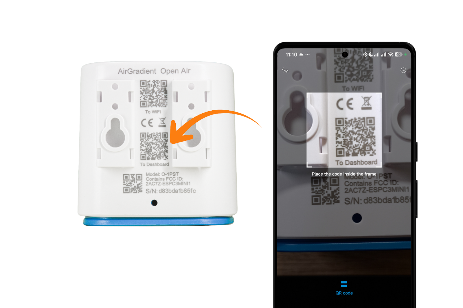 If you have a pre-assembled AirGradient Open Air, you can add it using the “Add to Dashboard” QR code printed on the back of the device.
