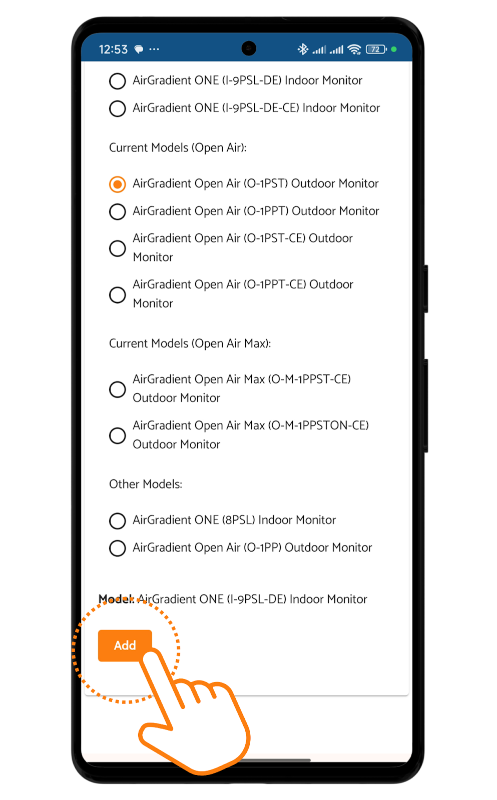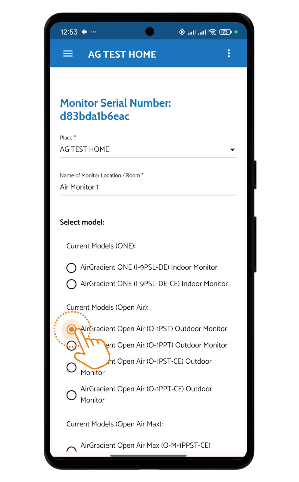 3. Select the exact model number. For assembled monitors, this is printed on the back of the monitor but for DIY kits, it is not. For the AirGradient Open Air the latest model number is generally either:
