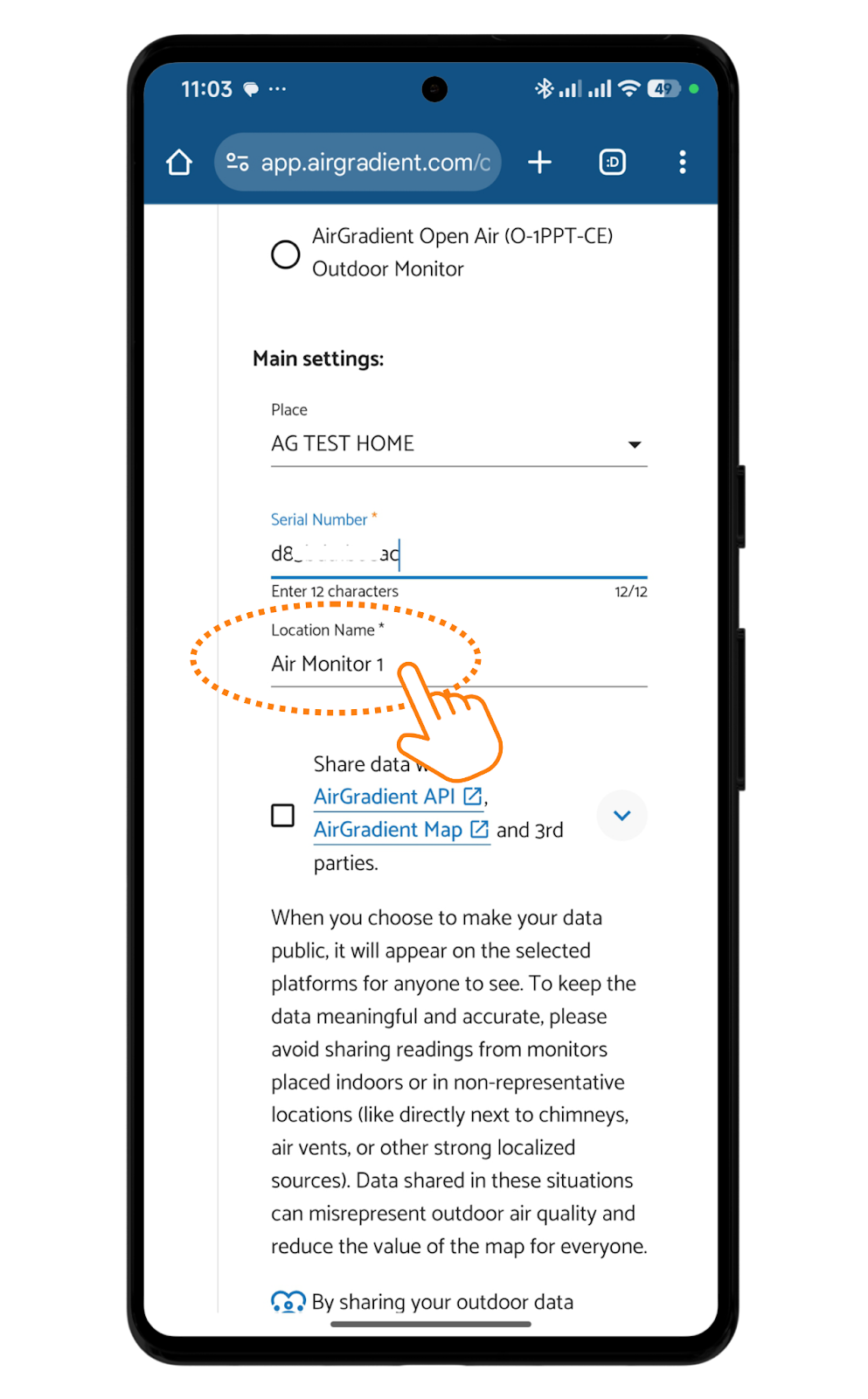 8. If you do choose to share your data publicly, you will need to enter a public name for the location and location coordinates.