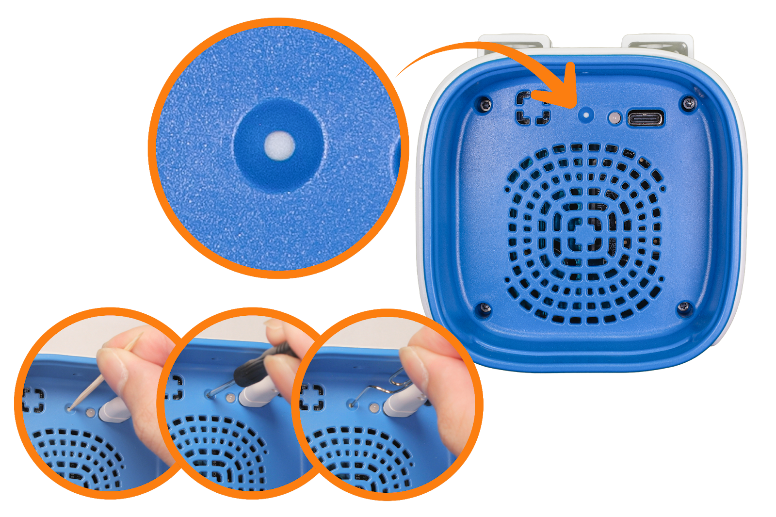 You can perform a factory reset by pressing and holding the BOOT button on the bottom of the device for about 10 seconds.