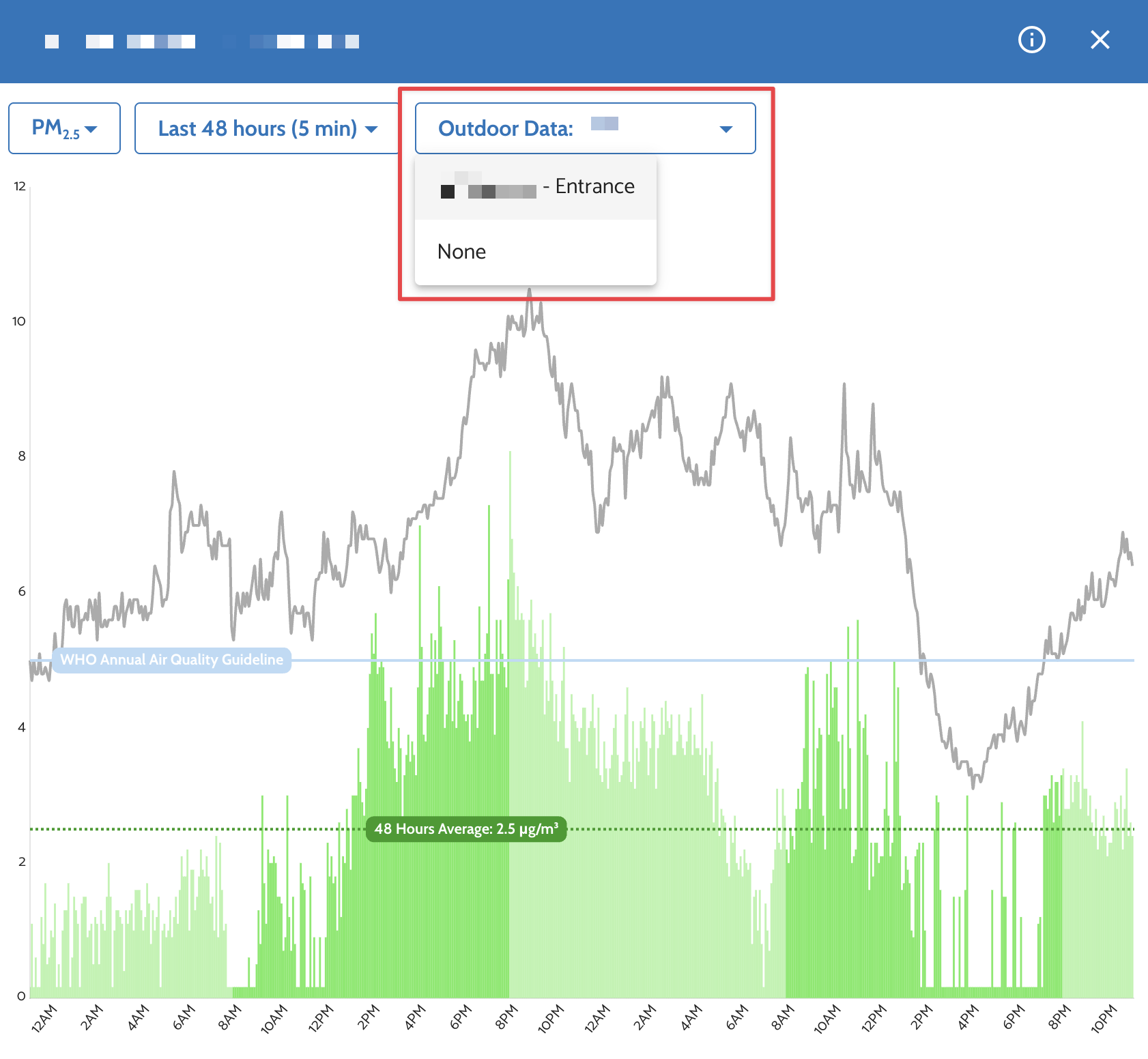 If you have both indoor and outdoor monitors, you can overlay outdoor data on indoor parameters to compare them.